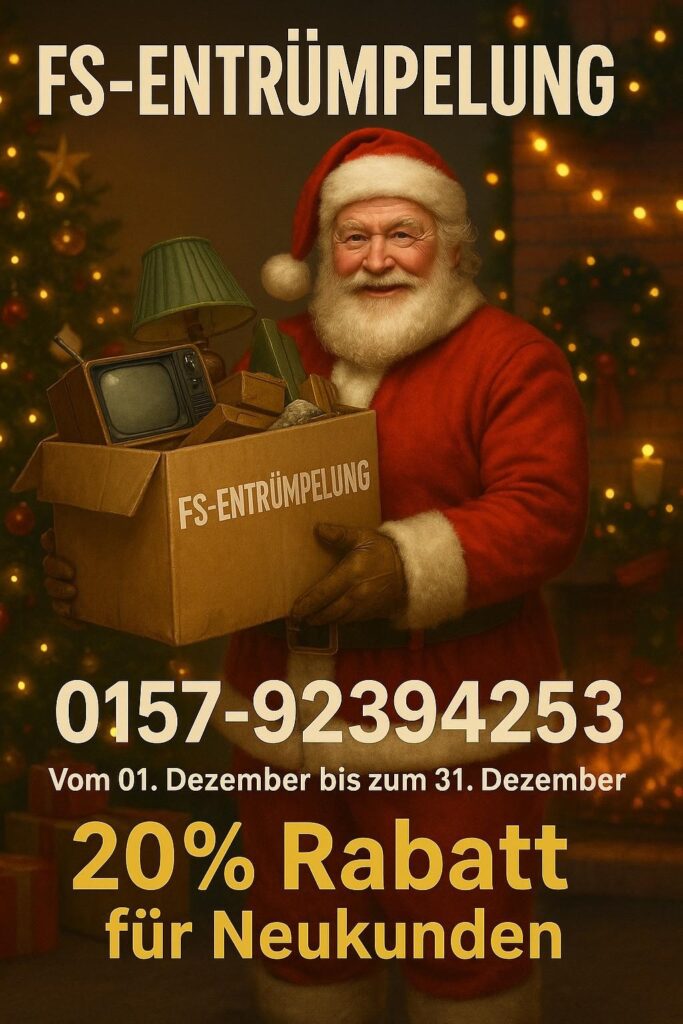 Wer ist FS-Entrümpelung? FS-Entrümpelung ist Ihr zuverlässiger Partner für professionelle Entrümpelungen, Wohnungsauflösungen, Reinigungen und Renovierungen in Frankfurt und Umgebung. Mit einem erfahrenen Team und modernem Equipment bieten wir Ihnen maßgeschneiderte Lösungen – schnell, effizient und kostentransparent. Ob Haushaltsauflösung, Messi-Wohnung oder Gewerbeobjekt – wir stehen Ihnen mit unserer Kompetenz zur Seite. Vertrauen Sie auf Fairness und Sauberkeit – vertrauen Sie auf FS-Entrümpelung!
